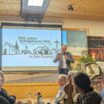 Auch zur zweiten Veranstaltung des Jubiläumsjahres ließ es sich unser Bürgermeister Michael Kastl nicht nehmen, seinen Beitrag zu leisten. Er eröffnete mit Schilderungen zur Eingemeindung in die Stadt Münnerstadt im Rahmen der Gebietsreform 1972 sowie persönlichen Eindrücken als Einwohner und bedankte sich beim Männergesangsverein für den „voluminösen“ Auftakt der ihm vorangegangenen musikalischen Einleitung.