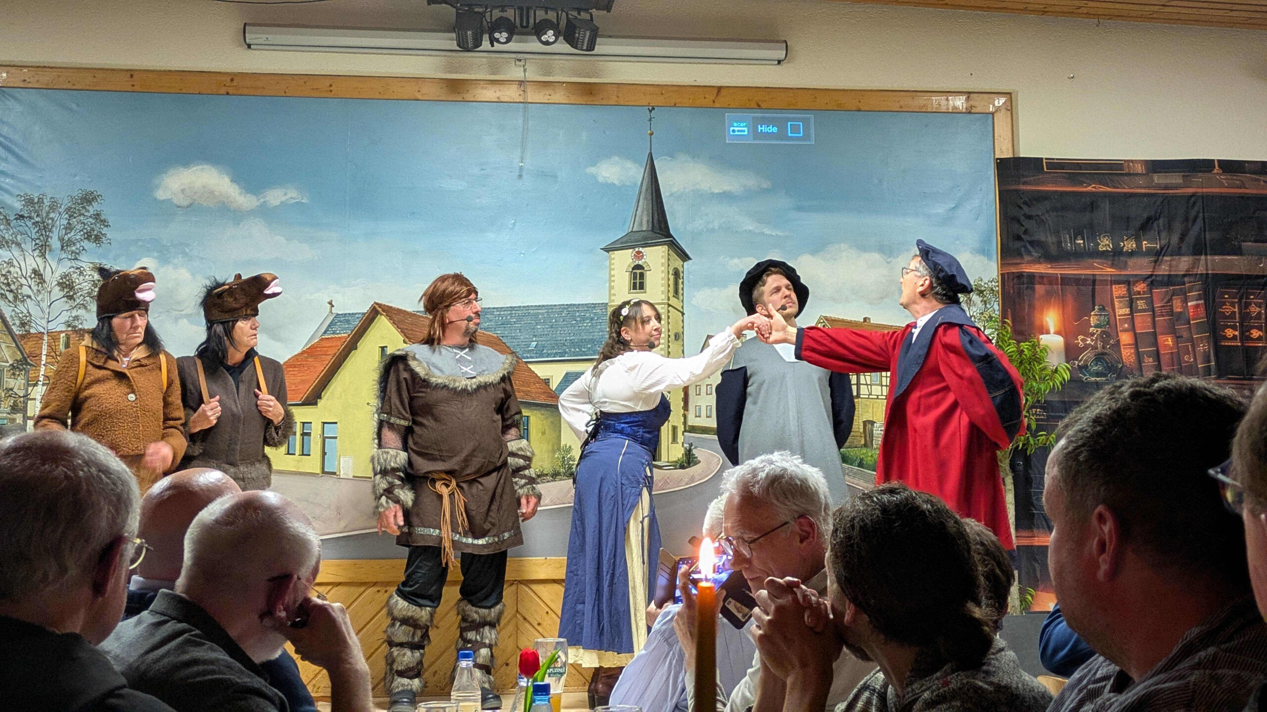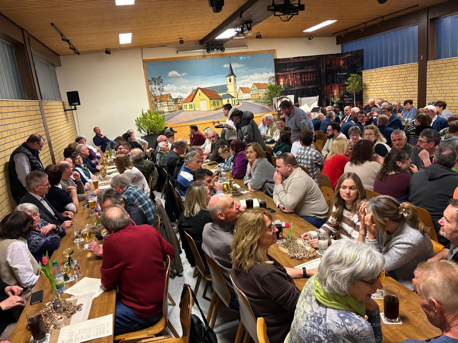 Für Seubrigshäuser Verhältnisse eigentlich undenkbar, war das Sportheim der DJK bereits lange vor Beginn des unterhaltsamen Abends gefüllt. Grob 170 Personen aus nah und fern(er) fanden ihren Weg zu einem einmaligen Ereignis, das nicht nur für Überraschungen bei der jüngeren Generation und Erinnerungen derer sorgte, die sich schon viele Jahre mit Stolz „Seubrigshäuser“ nennen dürfen, sondern auch für herzhaftes Lachen über extra für diesen Tag einstudierte Sketche mit den von der „Serwichhäuser Fosenacht“ bekannten Hauptdarstellern.