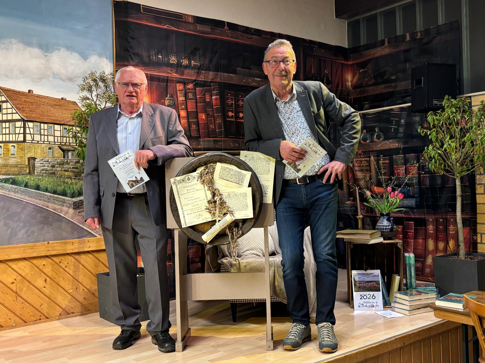 Mit Geschichte umrahmt von Charme und Witz füllten die beiden Autoren der beliebten und allseits bekannten Bücher den Abend. Die über Jahrzehnte betriebene Recherche über unser geliebtes Sigeburgehusen bildete dabei die Grundlage für spannende und hervorragend vorgetragene Anekdoten und Geschichten. Sogar Auszüge der Urkunde von 1126 übersetzte Konrad Steinert aus dem Lateinischen zum Verständnis aller in die deutsche Sprache.